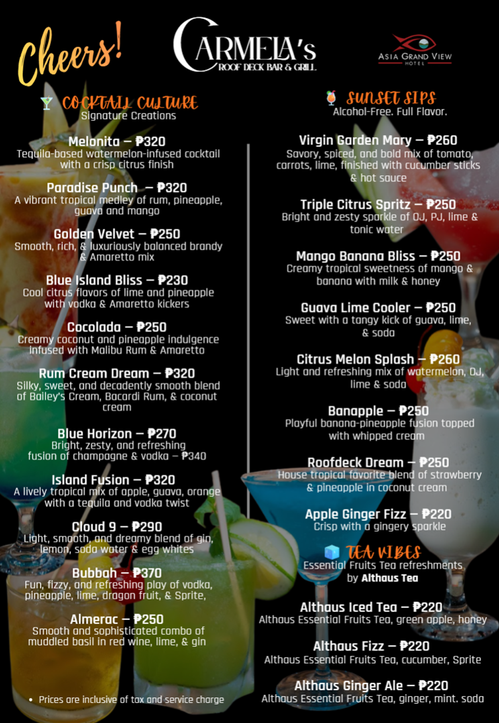 CARMELA’S SIGNATURE COCKTAILS & MOCKTAILS